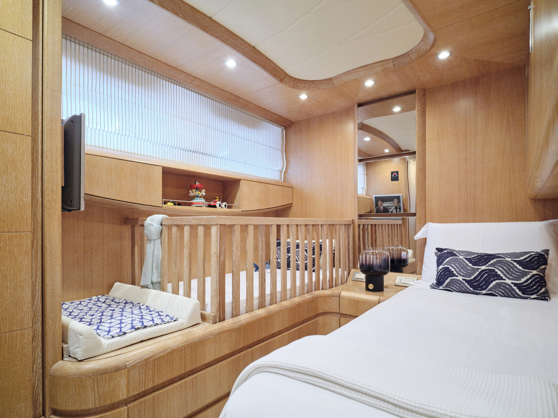 Cabin configuration: one Master stateroom, one VIP cabin, and two twins, each twin cabin with Pullman berth.