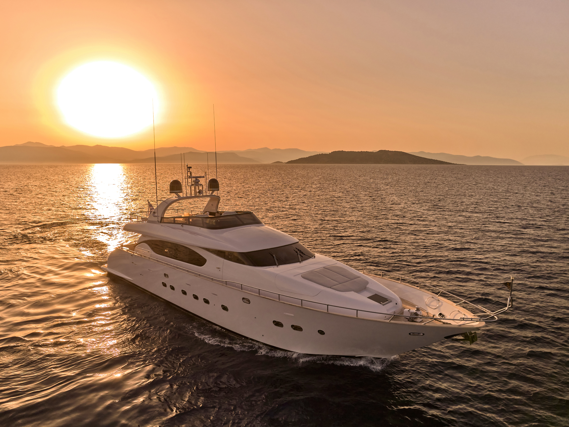 Tenders & Toys: Lomac Nautica 3.57m with Yamaha 40hp outboard, stored in the aft garage.